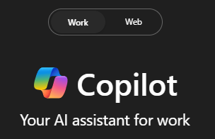 I find myself on the Copilot home page and from here I can choose between Work and Web (I can also access from Teams).