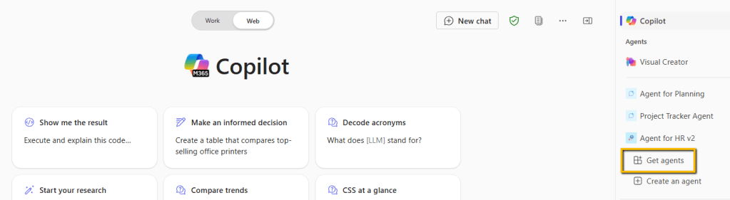 Just access Teams or Microsoft 365 Copilot and click on “Get agents”.
