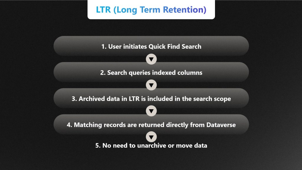 LTR isn’t just a “parking lot” for obsolete data; it’s a solution designed to free up space in transactional databases, reduce storage costs, and maintain regulatory compliance without sacrificing accessibility. Archived data remains integrated within Dataverse and can be analyzed in real time through tools such as Microsoft Fabric’s OneLake Shortcuts and Synapse Link.