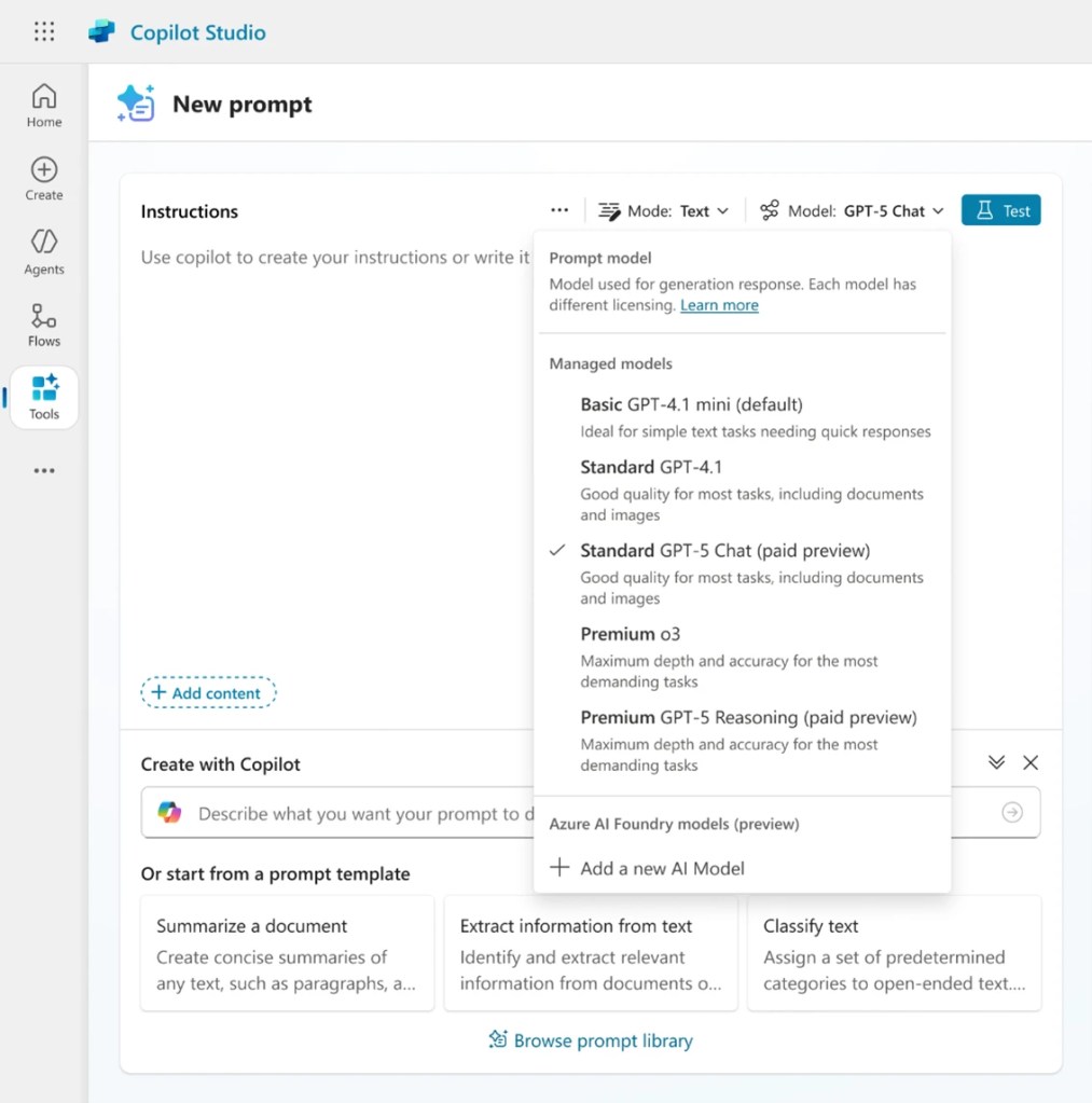 From today, various AI models will also be available during the creation of custom prompt tools.